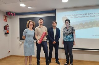 Luis jwith his supervisors just after receiving his doctors title based on a thesis entitled " Covert infections with RNA viruses in the Mediterranean fruit fly.