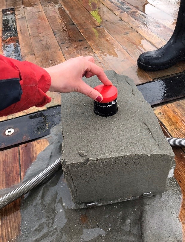 Figure 1: boxcore sampler on deck of the Navicula (NIOZ research vessel) used to retrieve sediment from the seabed (left) and a tube full of sand extracted for luminescence analysis (right)