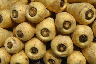 Lange Holkruin: Deze pastinaaksoort heeft een grote, vlezige witte wortel met een ingezonken kruin. Ook bekend onder de naam 'Utrechtsche Platkop'.
