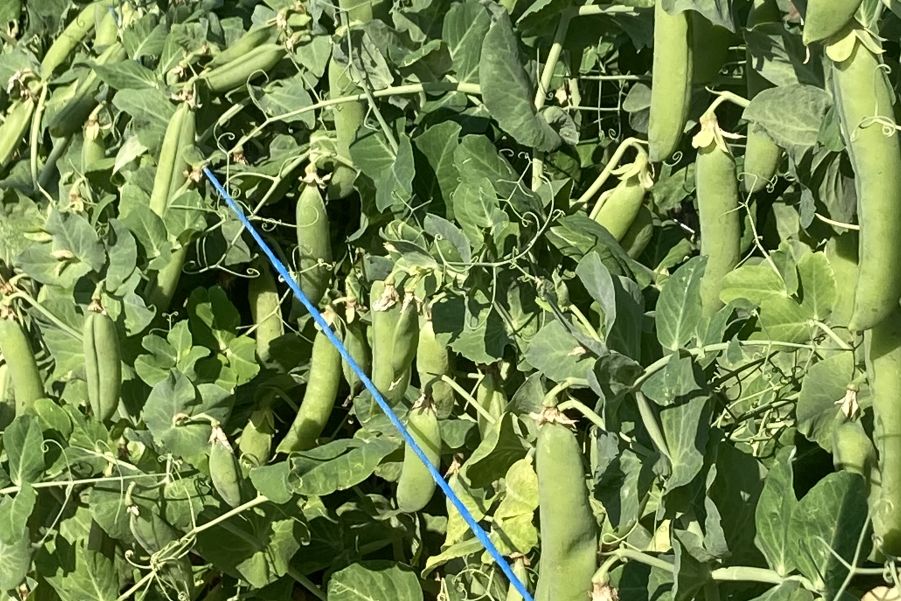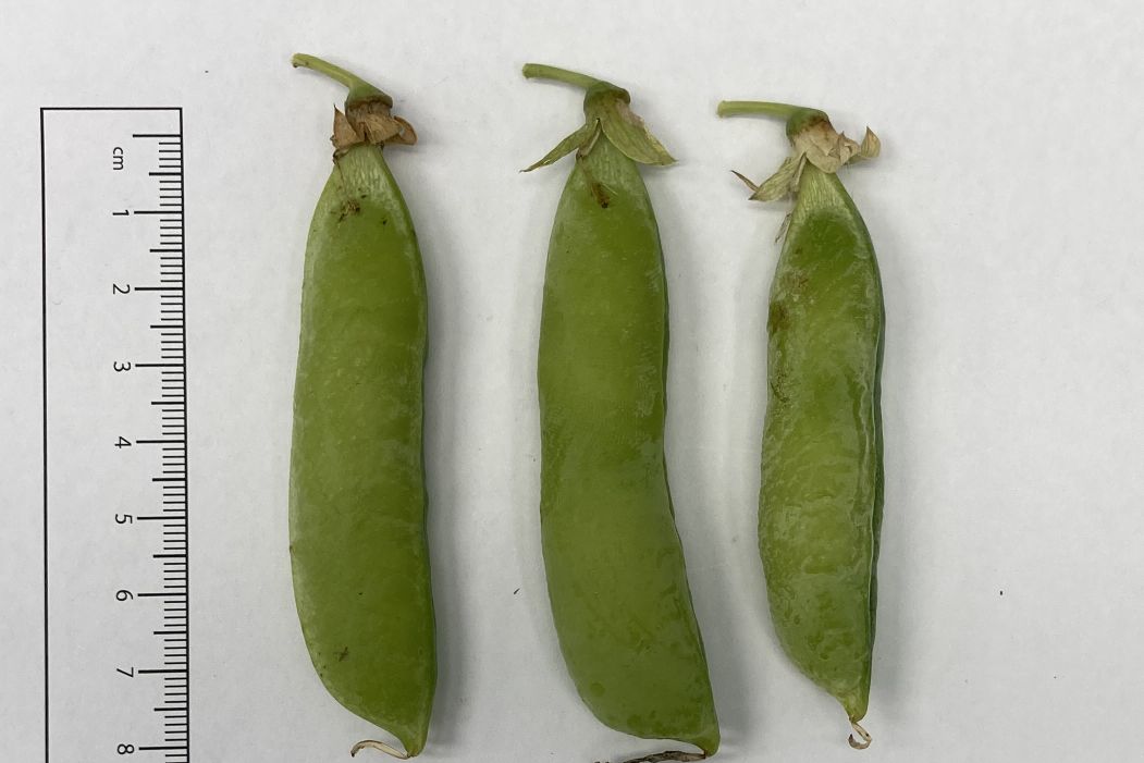 Het gewas van Mansholt’s Kortstro Schokkererwt bereikte op het veld in 2022 een hoogte van 85 cm, en gaf grote, talrijke en forse peulen van ongeveer 8 cm.
