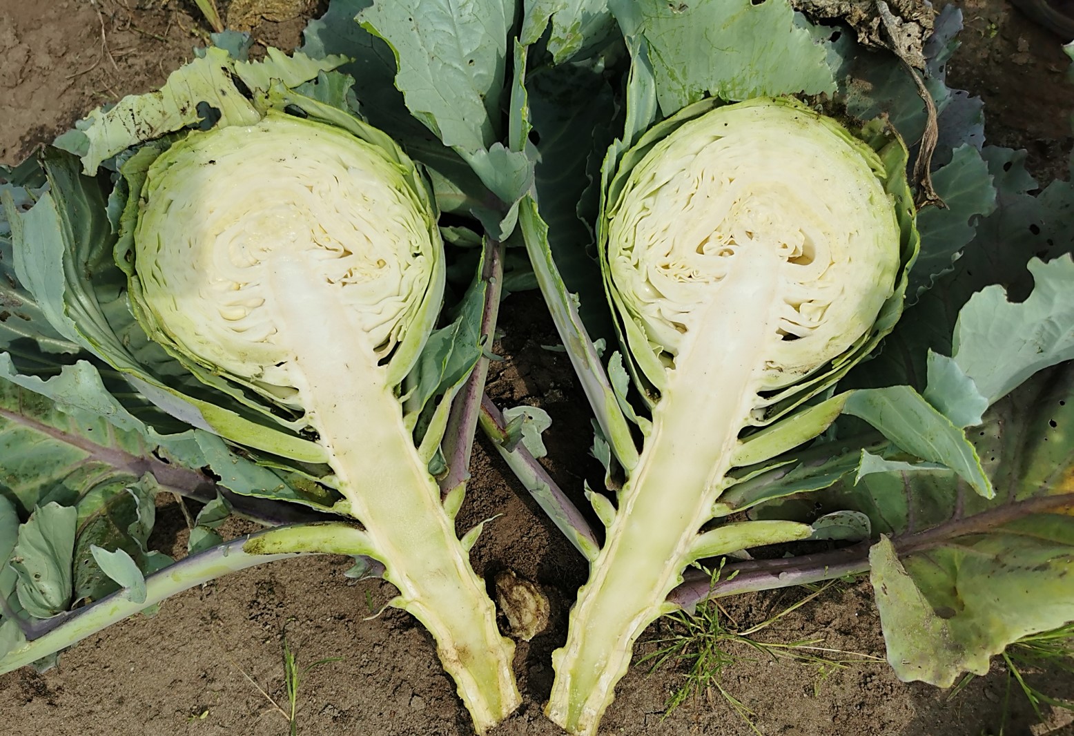 Het blad rondom de kool is opgericht en komvormig met veel plooien. De kleur is grijsgroen en het heeft een lange bladsteel. De kool zelf is van matige grootte, rond tot platrond en heeft een redelijke sluiting van de bladeren.