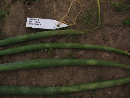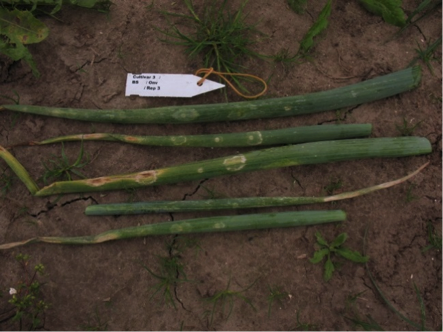 Botrytis aclada, Botrytis squamosa en Sclerotium cepivorum werden opgekweekt in vloeibare media, eiwitmonsters werden verkregen en getest op effector activiteit door infiltratie in uienblad. Als een monster effectoractiviteit bevat induceert het celdood, zichtbaar als een geel/bruine plek in de geïnfiltreerde zone van het blad. Effectoractiviteit was waar te nemen op volwassen planten in de tunnel. Planten in de klimaatcel reageerden langzaam, maar necrotische reacties waren makkelijker te scoren omdat deze planten vrij waren van trips schade en ziektes.