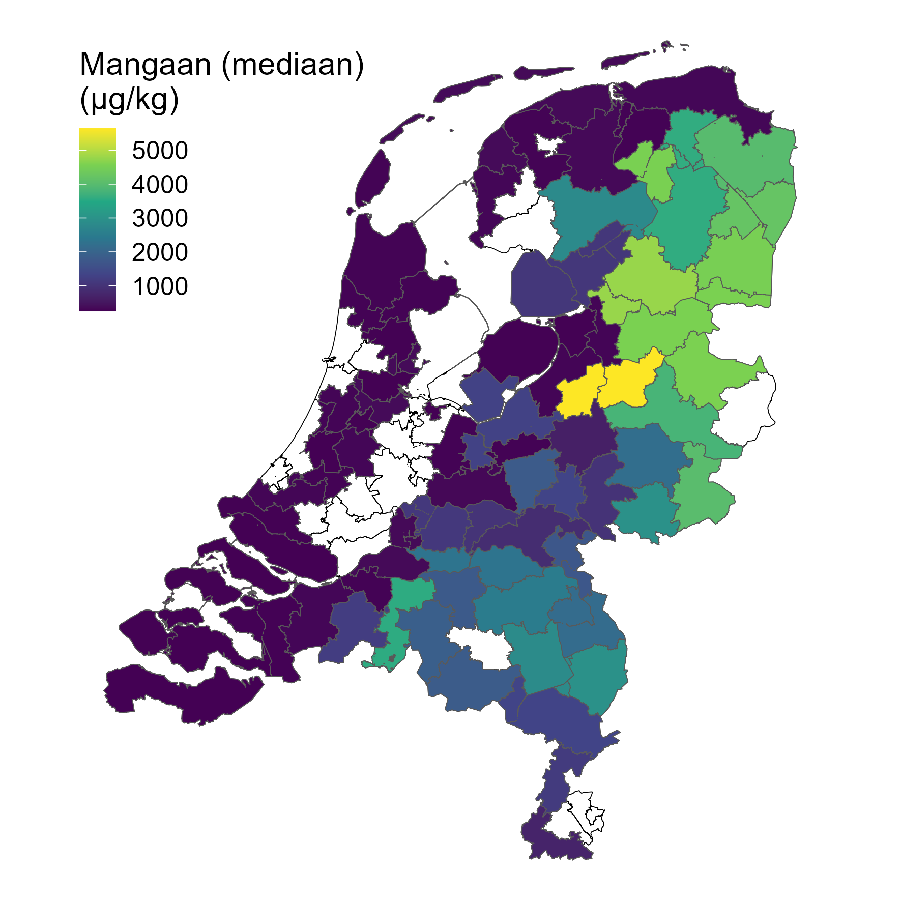 Er wordt voor mangaan niet geadviseerd op basis van grondonderzoek. Dit geldt voor alle grondsoorten.