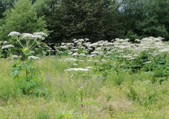 Reuzenberenklauw is een invasieve exoot die vooral voorkomt langs waterlopen, wegen en spoorwegen en wel 3-5 meter hoog kan worden. Deze berenklauw verdringt inheemse plantensoorten en bevat stoffen die bij beschadiging van het blad ernstige brandwonden kunnen veroorzaken. Hoe eerder met de bestrijding wordt begonnen, hoe beter het resultaat. In een vroeg stadium is de plant vaak nog wel weg te krijgen.