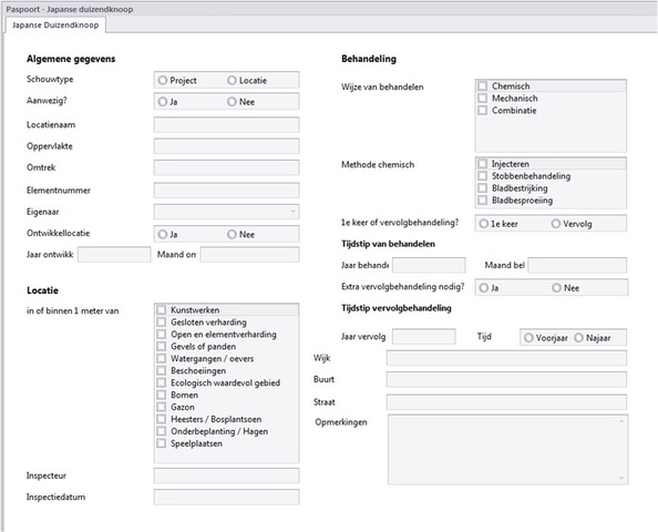 - Veiligheidsklasse (zijn er groeiplaatsen die het verkeer hinderen, tegen constructies of funderingen groeien, of groeit de duizendknoop vlak bij een bijzondere plant?)