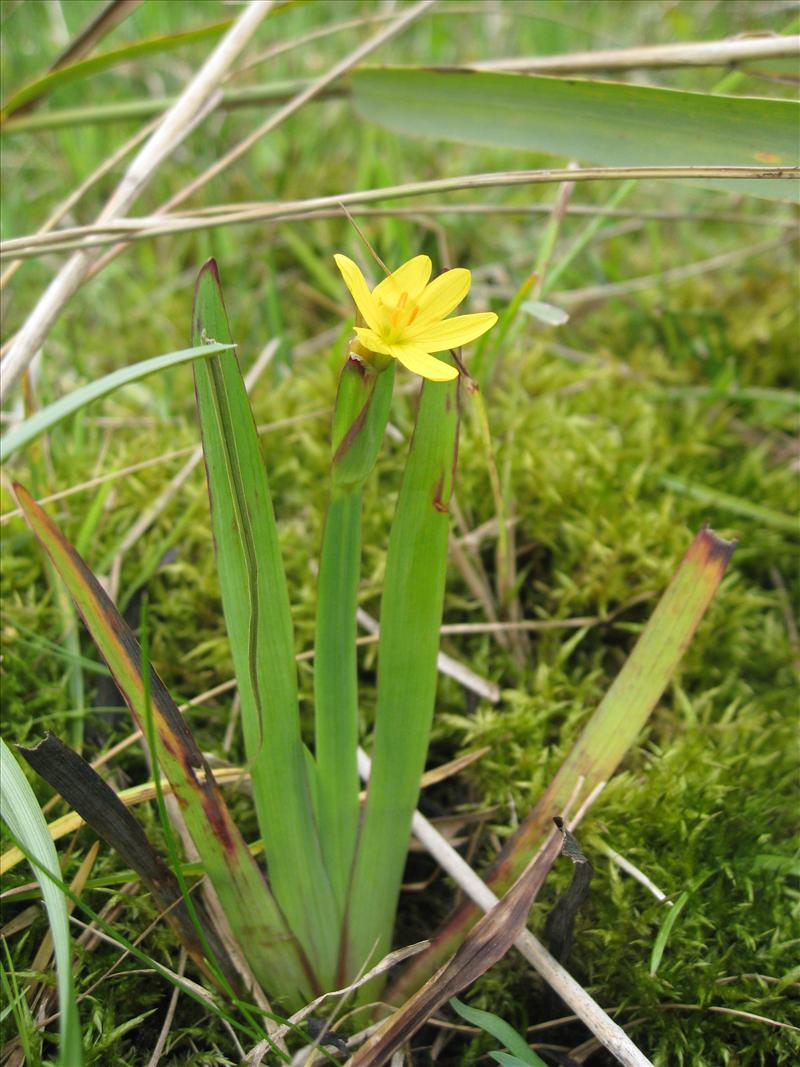 Gele Bieslelie (Sisyrinchium californicum) is een wintergroene tot halfwintergroene vaste plant met zwaardvormige, grasachtige, grijsgroene bladeren en een polvormende groei. De bieslelie bloeit van april tot juli met geurende, stervormige, gele bloemen met een diameter van ca. 2,5 cm aan stevige opgaande stengels. De plant houdt van een standplaats in volle zon of lichte schaduw en groeit op vochtige, schrale zandgronden, vaak in combinatie met orchideeën en andere zeldzame soorten. In de herfst verkleuren de randen van de bladeren paars. Gele Bieslelie is matig tot redelijk winterhard.
