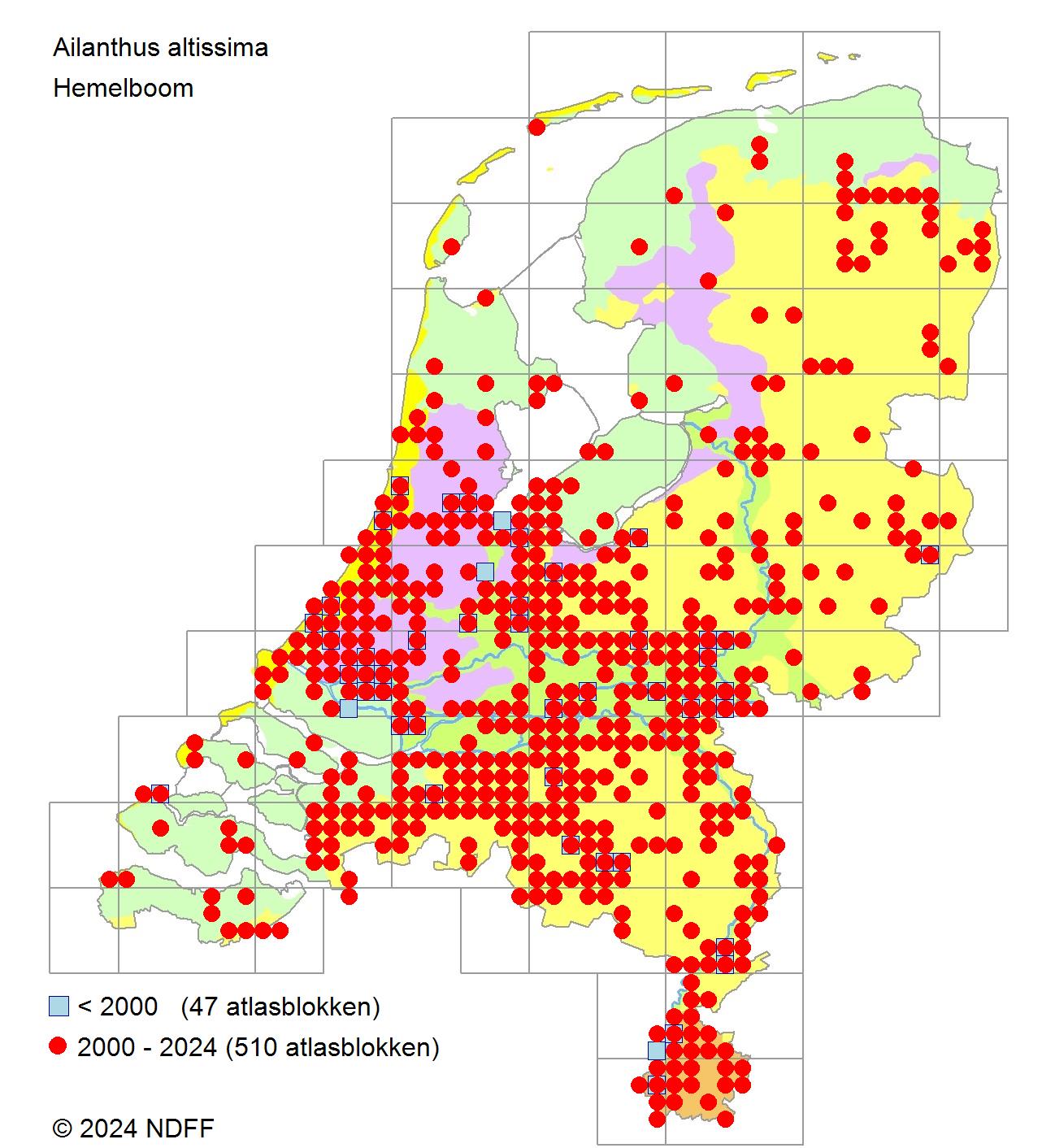 Hemelboom lijkt op andere soorten, kijk hier voor de look-a-likes. Er is ook een FLORON zoekkaart met meer informatie over de herkenning van Hemelboom.