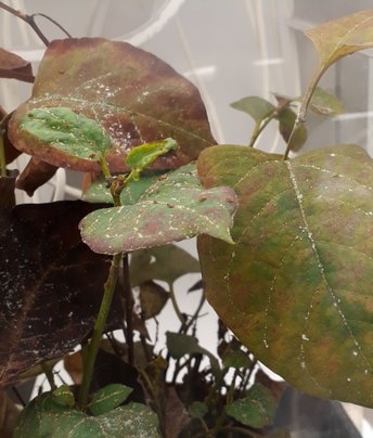 Foto rechts: Duizendknoop met (links) en zonder (rechts) bladvlooien - Foto: CABI