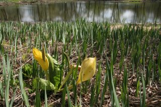 De uit Noord-Amerika afkomstige Moeraslantaarn is met haar grote gele bloeiwijze een opvallende verschijning in het voorjaar. Moeraslantaarn is een oeverplant en groeit in natte gebieden langs stromen en rivieren, aan meren en vijvers. De planten vormen een dichte vegetatie waardoor inheemse plantensoorten worden weggeconcurreerd. Bestrijding van moeraslantaarn is relatief eenvoudig door rooien of uitsteken, maar dit moet wel jaren worden volgehouden.
