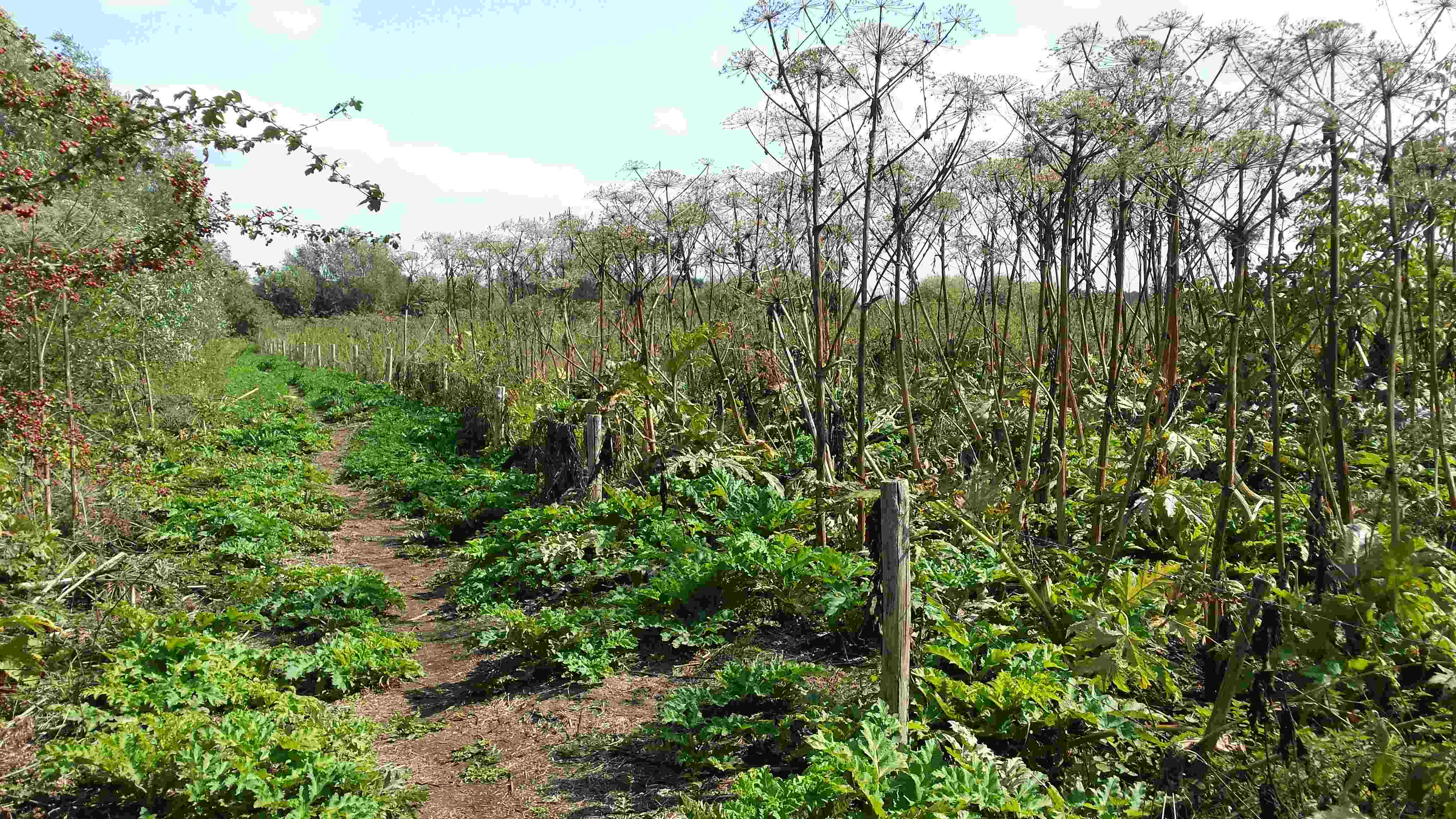 Klik op de afbeelding om deze te vergroten (Chemische bestrijding van reuzenberenklauw is in Nederland niet toegestaan, meer informatie)