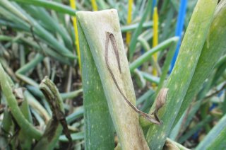 Het weer geeft geen informatie over de ziektebronnen die aanwezig zijn. Om daar naar te kijken zetten we sporenvangers in het veld. De sporen worden ingevangen op plakkerige strips. In theorie kun je de sporen dan onder een microscoop tellen. Dat is heel nauwkeurig werk en bovendien kan je bijvoorbeeld de verschillende Botrytis-soorten op het oog niet of nauwelijks uit elkaar houden.